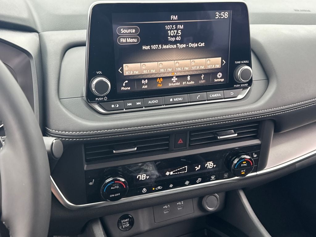 - Radio: AM/FM NissanConnect -inc: 6 speakers plus 2 tweeters, Apple CarPlay, Android Auto, 8" color touch screen display, Bluetooth®, 2 front USB type-C, Wi-Fi hotspot and NissanConnect Services powered by SiriusXM